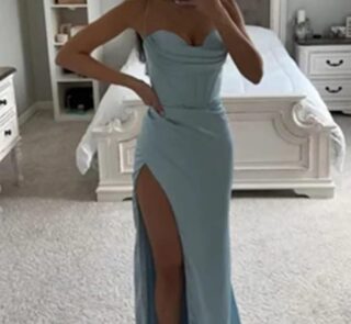 Women’s Satin Mermaid Prom Dresses Long Halter Sweetheart Corset Formal Evening Party Gowns with Slit